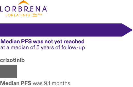 • At 5 years, 60% of patients on LORBRENA had not experienced tumor growth. Therefore, the median (50%) progression-free survival still had not been reached
